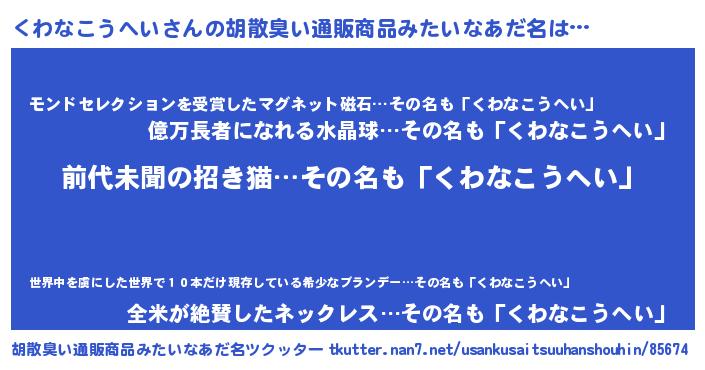 | ヘコむあだ名 | 『くわなこうへい(笑)』『くわっ子』 |