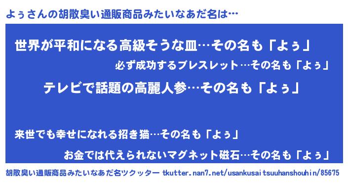 | ヒーロー風カッコイイあだ名 | 『最強戦士ヨゥ』『ウルトラよぅマン』 |