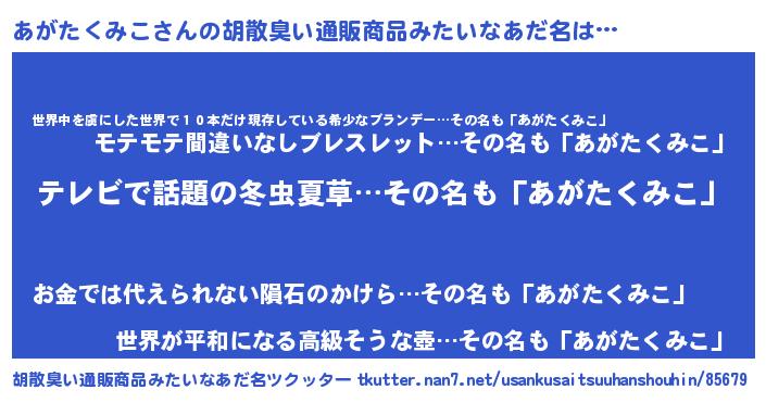 | 意味不明あだ名 | 『自称あがたくみこ』 |