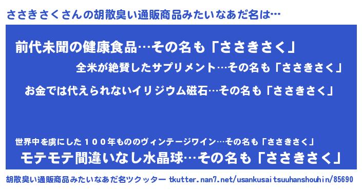 | ヒーロー風カッコイイあだ名 | 『愛の使者ささきさく』『ネオササキサク』 |