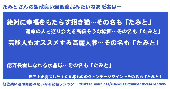 意味不明あだ名 | 『自称たみと』『永久保存たみと』 |