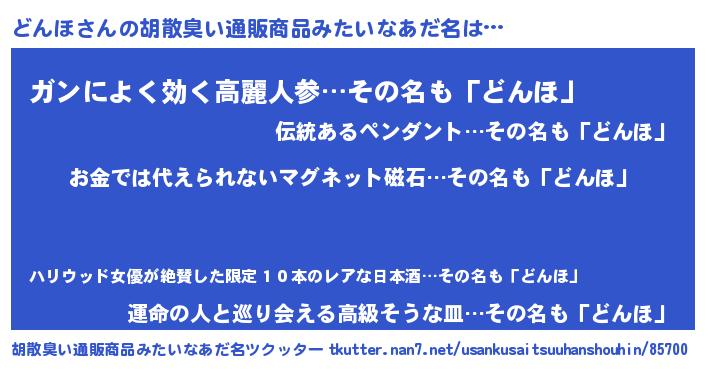 | ヘコむあだ名 | 『なまこ酢』『どんを』『どんにー』 |