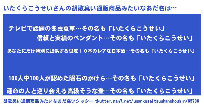 | 恥ずかしいあだ名 | 『イタクラコウセイデラックス』 |