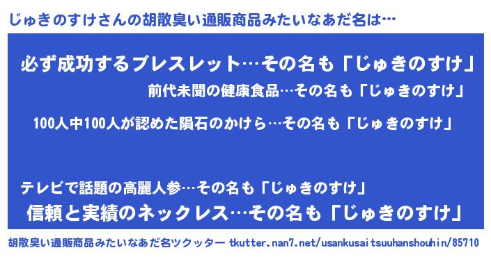 | 肩書あだ名 | 『じゅきのすけ少将』『じゅきのすけ助手』 |