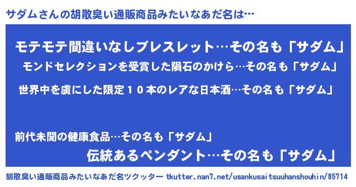 | 欧米人風あだ名 | 『ダレノガレサダム』『マイケルサダム』 |