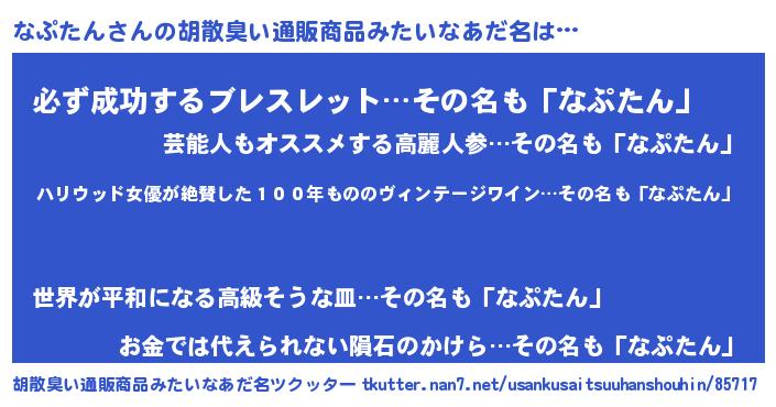 なぷたんさんの胡散臭い通販商品みたいなあだ名をツクッター!