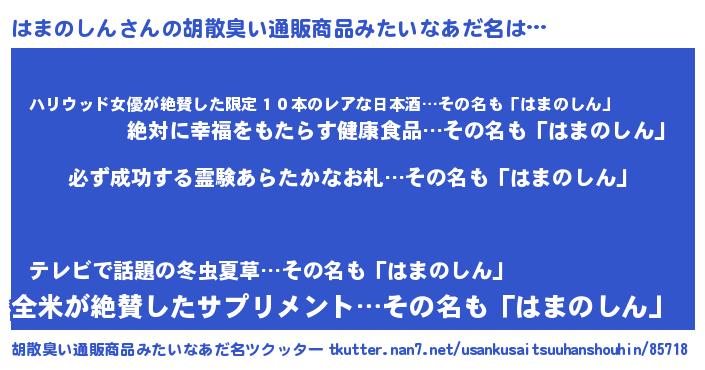 | 男性向けラノベタイトル風あだ名 | 『緋弾のハマノシン』『はまのしんの憂鬱』 |