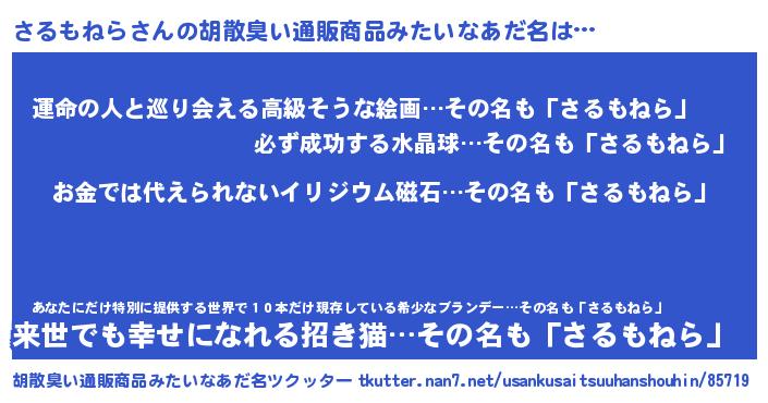 | 伝説のあだ名 | 『魔王と互角に渡り合う占い師さるもねら』 |