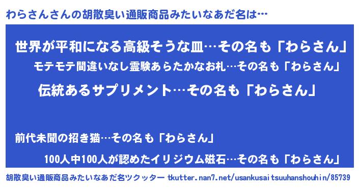 | ヒーロー風カッコイイあだ名 | 『幻影騎士ワラ』『ウルトラわらさんマン』 |