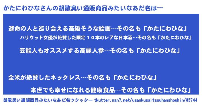 | 意味不明あだ名 | 『自称かたにわひな』 |