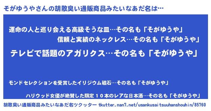 | 意味不明あだ名 | 『自称そがゆうや』 |