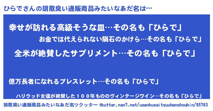 | ピコ太郎風あだ名 | 『ヒラ次郎』『ピヒ五郎』『ヒヒ太郎』 |
