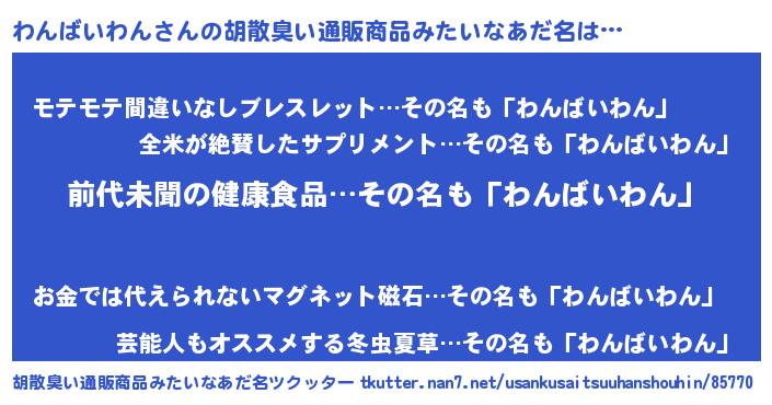 | ヘコむあだ名 | 『わんばいわん(笑)』『わんにー』 |