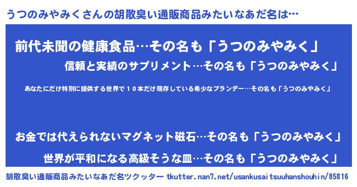 | 肩書あだ名 | 『うつのみやみく上級大将』 |
