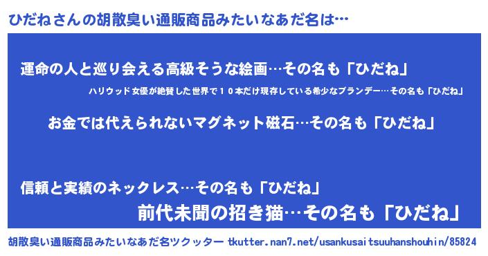 | ヘコむあだ名 | 『なまこ酢』『ひだね(笑)』『ひだお』 |