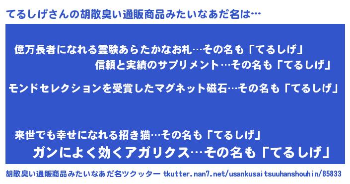 | ヒーロー風カッコイイあだ名 | 『慈愛の使者てるしげ』『黄金騎士テル』 |