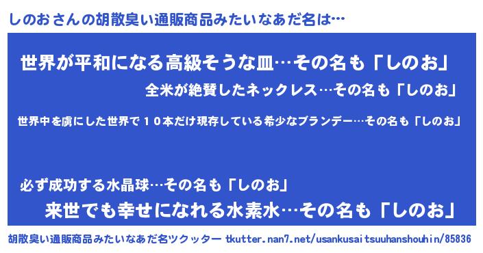 | 意味不明あだ名 | 『住所不定無職しのお(79歳)』 |