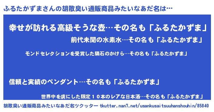 | ヘコむあだ名 | 『酢こんぶ』『ふるたかずま(爆)』 |