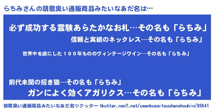 | 恥ずかしいあだ名 | 『プリティーらちみ』『ラチミデラックス』 |