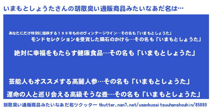 | ヘコむあだ名 | 『いまもとしょうた(笑)』『レバニラ』 |