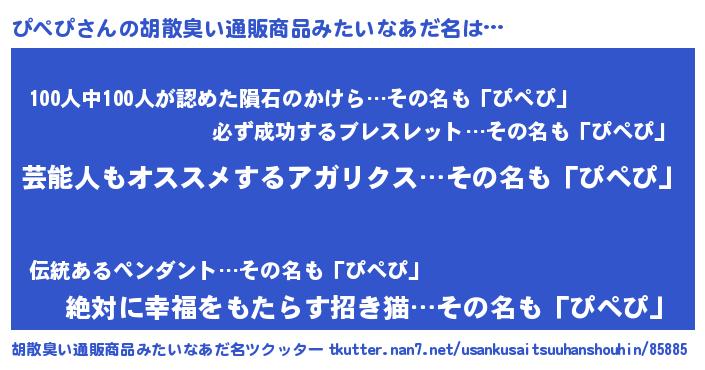 | ヘコむあだ名 | 『ぴぺぴ(笑)』『ぴぺにー』『ぴぺお』 |
