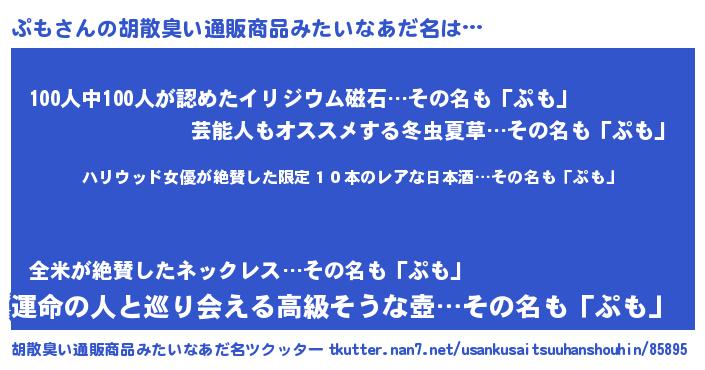 | ヘコむあだ名 | 『つくし』『ぷもを』『ぷもふぇ~』 |