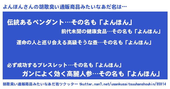 よんほんさんの胡散臭い通販商品みたいなあだ名をツクッター!