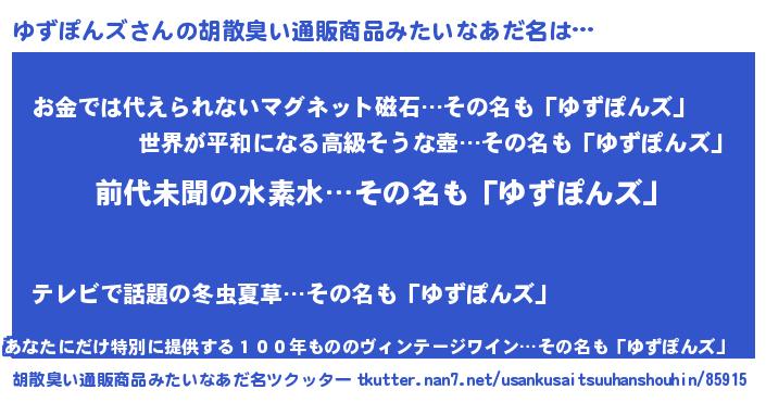 | ヘコむあだ名 | 『ゆずぽんズ(遠い目)』『豆乳』 |