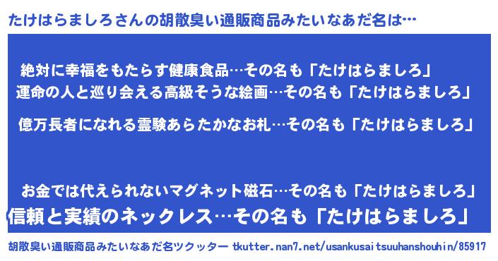 ヘコむあだ名 | 『たけもー』『たけはらましろ(震え声)』 |
