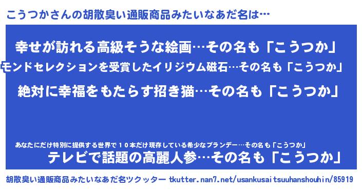 | 意味不明あだ名 | 『永久保存こうつか』『自称こうつか』 |