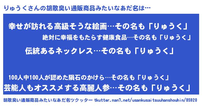 | 意味不明あだ名 | 『とにかく怪しいりゅうく』 |