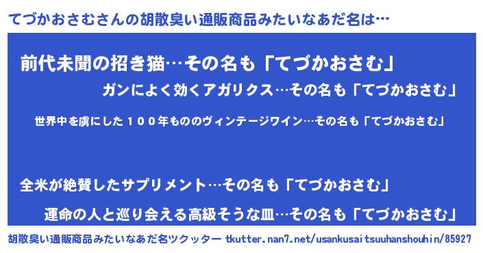 | ヒーロー風カッコイイあだ名 | 『仮面テヅダー』『ネオテヅカオサム』 |