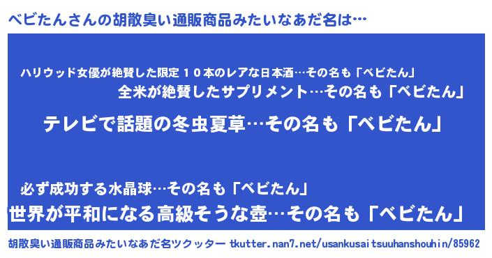 | 女子向けラノベタイトル風あだ名 | 『闇のベビたん』『ベビたんの雑貨屋さん』 |