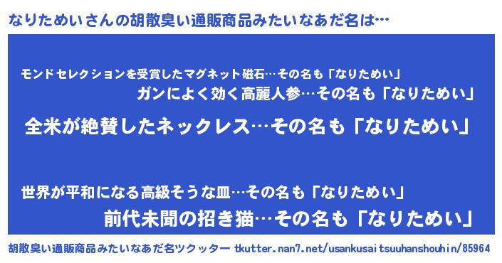 | 意味不明あだ名 | 『とにかく怪しいなりためい』 |