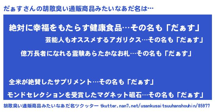 | ヘコむあだ名 | 『だぁっふぃ~』『だぁす(爆)』 |