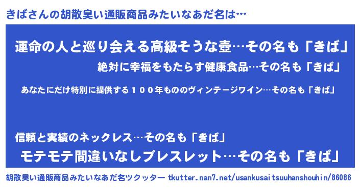 | 意味不明あだ名 | 『住所不定無職きば(1歳)』『ペロリンきば』 |