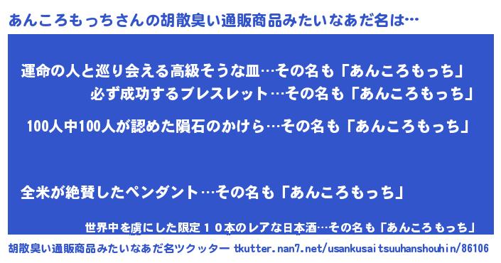 | 欧米人風あだ名 | 『ダニエルあんころもっち』 |