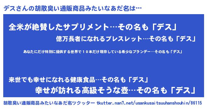 | 意味不明あだ名 | 『ニラ科デス属』『住所不定無職デス(12歳)』 |