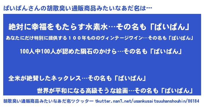 | ヒーロー風カッコイイあだ名 | 『正義の使者ぱいぱん』『ネオパイパン』 |
