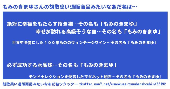 | 欧米人風あだ名 | 『トリンドルもみのきまゆ』 |