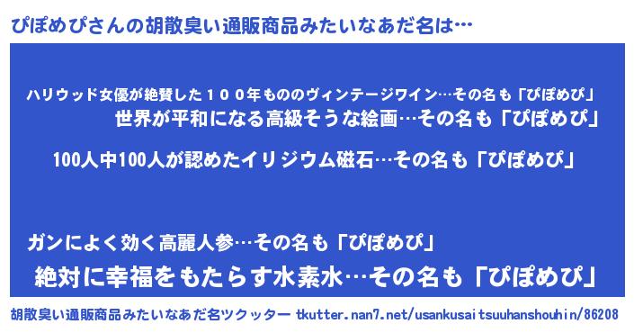 ぴぽめぴさんの胡散臭い通販商品みたいなあだ名をツクッター!