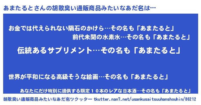 | 意味不明あだ名 | 『とにかく怪しいあまたると』 |