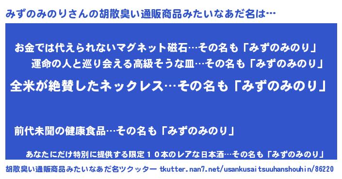 | 意味不明あだ名 | 『とにかく怪しいみずのみのり』 |