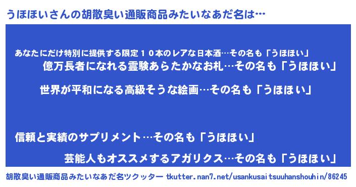 | ヒーロー風カッコイイあだ名 | 『ウルトラうほほいマン』『仮面ウホダー』 |