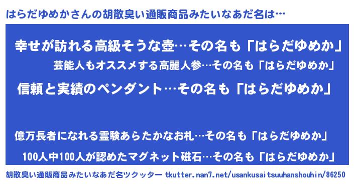 | 意味不明あだ名 | 『とにかく怪しいはらだゆめか』 |