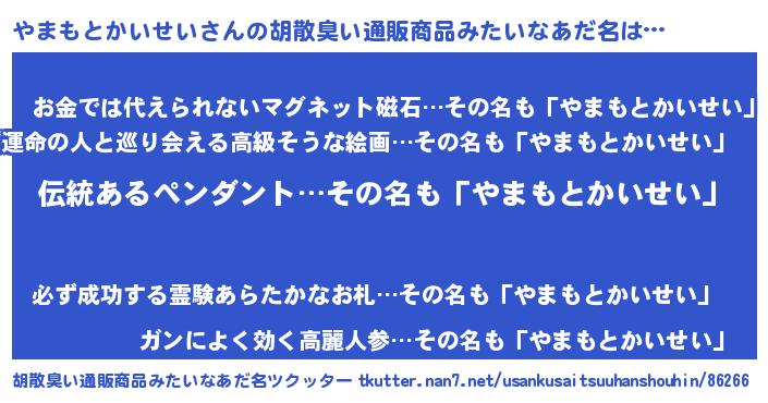 | 意味不明あだ名 | 『とにかく怪しいやまもとかいせい』 |