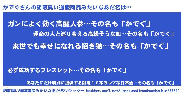| ヘコむあだ名 | 『かでぐ(笑)』『豆乳』『かでにー』 |
