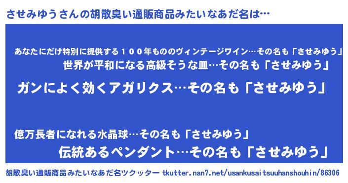 | 伝説のあだ名 | 『孤高の僧侶させみゆう』 |