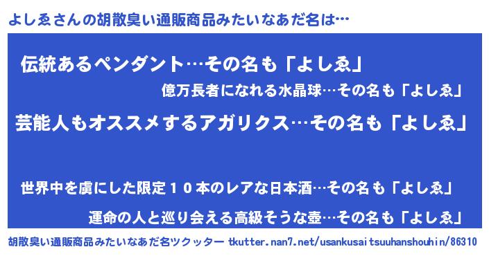 | 意味不明あだ名 | 『自称よしゑ』『とにかく怪しいよしゑ』 |