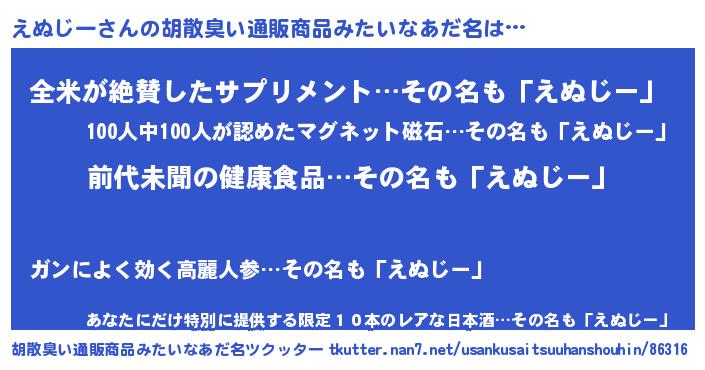 | 意味不明あだ名 | 『永久保存えぬじー』『自称えぬじー』 |